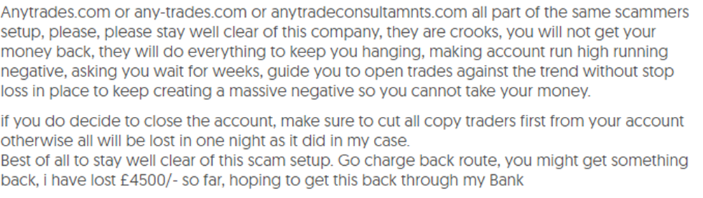 A quick search reveals a plethora of negative reviews from clients who have interacted with AnyTrades. Common complaints include: