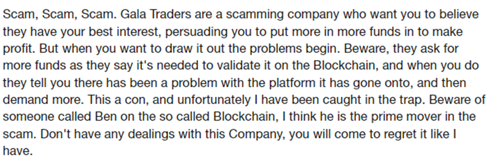 Misleading Promises: Clients report that Gala Traders made high-profit promises that never materialized, leading to unexpected losses.