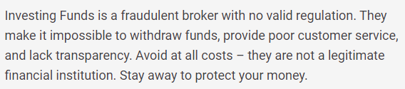 These reviews confirm that Investing Funds is a scam, and potential investors should steer clear of this fraudulent broker.