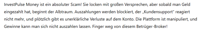InvestPulse Money has left behind a trail of negative reviews from disgruntled customers who have fallen victim to their deceptive practices. These reviews reveal a troubling pattern of broken promises, unresponsive customer service, and an inability to withdraw funds. Many traders report that they were initially drawn in by the broker’s flashy website and attractive offers but quickly realized they had been scammed once they attempted to withdraw their earnings.