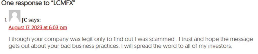 Numerous reviews and complaints from clients paint a troubling picture of LCMFX. Many traders report being unable to access their funds, with some stating that they never received their initial deposits back.
