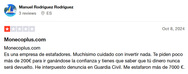 Victims of Monecoplus have shared their experiences online, and the feedback is overwhelmingly negative. Numerous traders have reported feeling deceived and misled by the promises made by the broker, only to find that they were unable to withdraw their money or access their accounts.