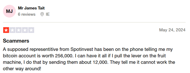 Victims of Spotinvest have left a trail of negative reviews and complaints across various forums and social media platforms. Many clients report similar experiences: they deposit money into their accounts, only to find that they cannot withdraw it. Others describe the platform as unreliable, with frequent technical glitches, delayed transactions, and poor customer service.