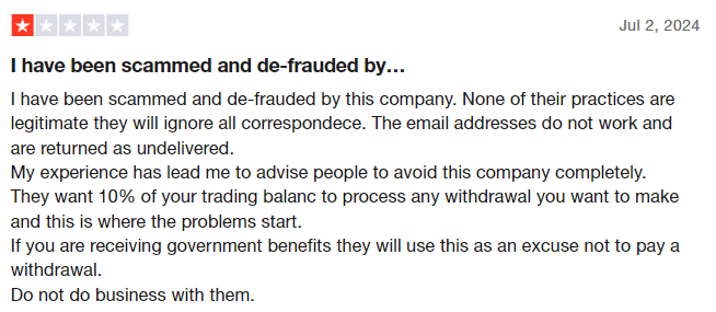 - Withdrawals Difficulties: Once clients have deposited funds, many have reported issues with withdrawing money from their accounts. This is a classic sign of a scam broker: once they have your funds, they will make it difficult or impossible for you to access your money.