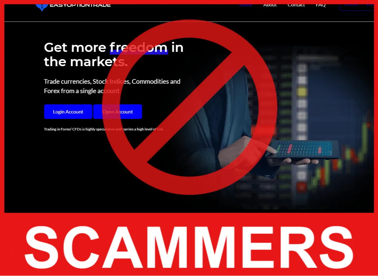 On the surface, Easy Option Trade presents itself as a modern online broker offering access to trading financial markets. The website is designed with slick graphics, professional fonts, and promises of easy profits through options trading, forex, and other assets. Many potential clients encounter online ads, social media messages, or direct outreach that paints the broker as a gateway to financial success. Yet the reality behind the site tells a very different story. Although Easy Option Trade markets itself as a legitimate broker, it does not provide clear, independently verifiable information about its registration, corporate ownership, or regulatory compliance. Legitimate brokers typically display licenses and registration numbers from recognized financial authorities, but Easy Option Trade does not have transparent documentation to prove that it is authorized to handle investments. Instead, the information available on the website is vague, often cites general benefits, and lacks the concrete details a serious investor would expect. A reliable broker has systems in place to ensure client funds are stored securely, that trades are executed fairly, and that users can withdraw their assets without unnecessary obstacles. Many experts in the financial world consider these requirements basic prerequisites for trust. In contrast, Easy Option Trade does not offer this level of transparency or operational clarity. Its website is newly registered, meaning the domain itself has no long history or established reputation in the industry. The contact information provided is basic and likely not linked to a regulated corporate entity. These characteristics alone lead many analysts to classify Easy Option Trade not as a reputable financial intermediary, but as a high‑risk, unregulated online trading platform that should be approached with extreme caution.