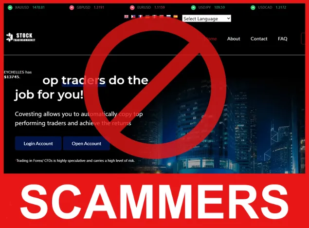 Stocktradingomarket is a typical scam broker using proven schemes to deceive trusting investors. Lack of licenses, manipulation of trading platforms, blocked withdrawals, and aggressive marketing all indicate dishonesty and illegal activity.