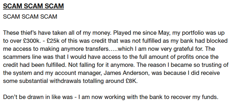 - Regulation Status: Unregulated and blacklisted by the UK Financial Conduct Authority (FCA)